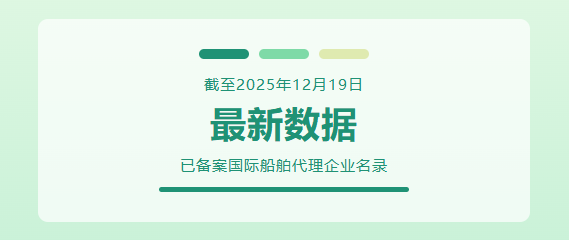 依据《中华人民共和国国际海运条例》及《中华人民共和国国际海运条例实施细则》的要求,下列国际船舶代理企业提交了备案相关文件,备案材料齐备,符合备案规定要求。中国船舶代及无船承运人协会已在协会网站www.casa.org.cn公示了已备案国际船代企业名单。 已备案国际船舶代理企业可在“水路运输建设综合管理信息系统”(http://wtis.mot.gov.cn)首页左侧“资质查询”边栏国际船舶代理企业备案查询栏目查询是否备案。 请点击下方链接获取最新已备案国际船代企业名单,或请在微信公众号回复关键字“船代名单”获取下载链接。 点击下载:已备案国际船代企业名单(截至2025年12月19日).xlsx