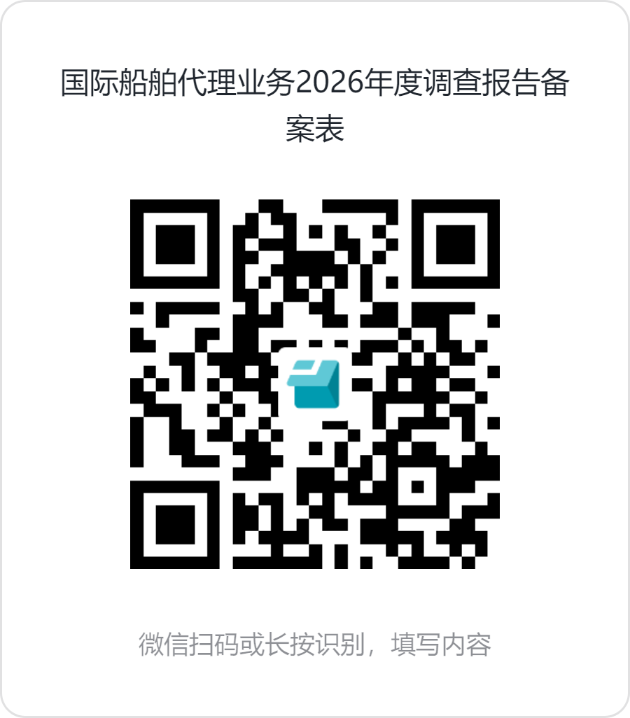 为协助政府主管部门完善对国际船舶代理市场事中、事后监管,准确掌握国际船舶代理行业状况,已办理了国际船舶代理业务备案的企业,应每年进行“国际船舶代理业务年度调查报告备案”(以下简称“年度备案”)。年度备案资料只提供给政府主管部门及协会用于行业调研,不会向其他任何个人及组织泄露,请国际船舶代理企业积极参与配合。 “尚未取得备案回执的新备案国际船舶代理企业”请在“水路运输建设综合管理信息系统申报端”( http://wtis.mot.gov.cn)进行新成立国际船舶代理企业备案,不要按照此通知办理。 有关2026年度备案工作说明如下: 1.参与备案企业范围及时间: 所有2025年12月31日前已办理了国际船舶代理业务备案,并已收到由协会发放的《国际船舶代理企业备案回执》或由水路运输建设综合管理信息系统发放的《国际船舶代理业务备案回执》的国际船代企业均应参加年度备案。备案时间为即日起至2026年6月30日,逾期将不再接受备案资料,因逾期未备案产生的后果,由企业自行承担。 2.2026年度备案方式: ①下载EXCEL版《国际船舶代理业务2026年度调查报告备案表》填写完毕后打印并加盖企业公章,并扫描为图片; ②扫二维码,线上填写《国际船舶代理业务2026年度调查报告备案表》