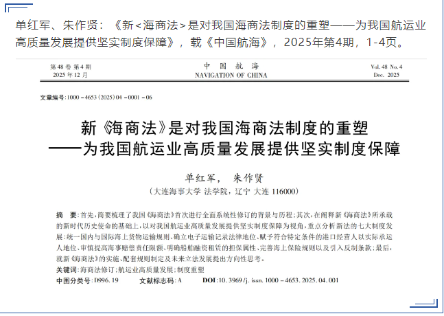 单红军、朱作贤:新《海商法》是对我国海商法制度的重塑——为我国航运业高质量发展提供坚实制度保障